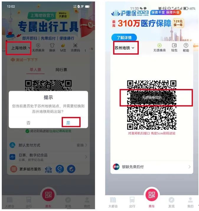 要使用苏州、上海地铁互联互通功能,需将“苏e行”App升级到V3.23.0及以上版本,“Metro大都会”App更新至2.5.16 及以上版本!
