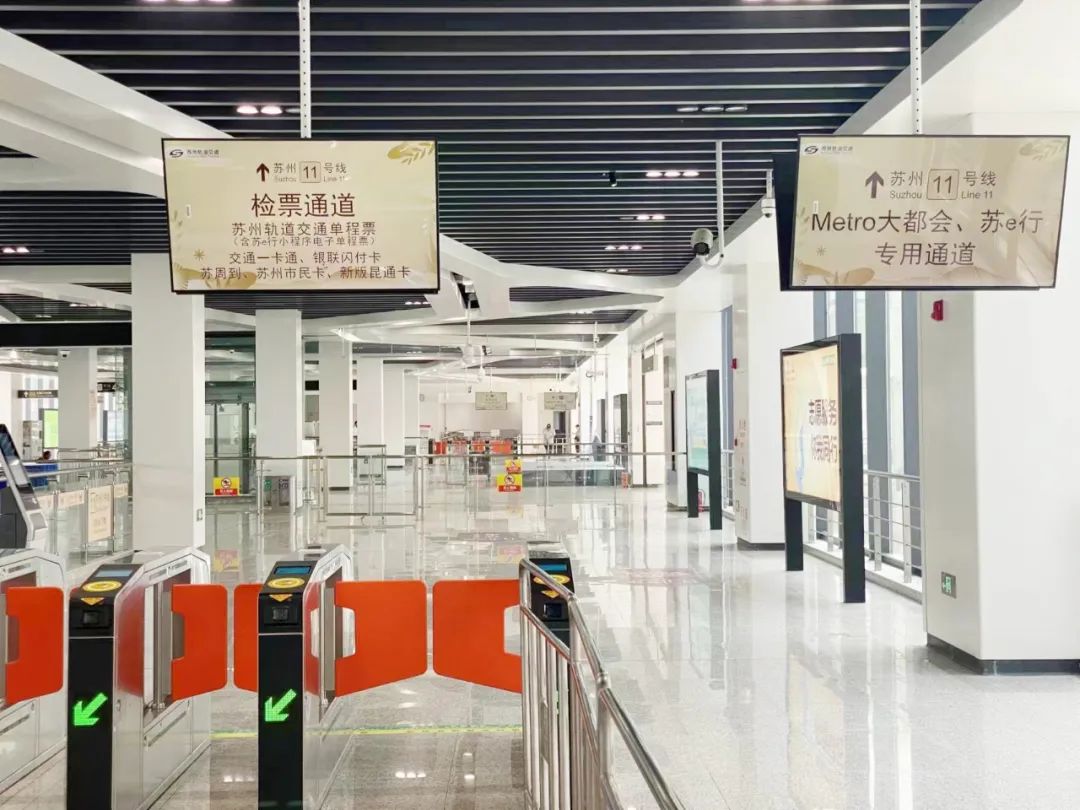 中间通道主要是为了方便乘客进出站,从该通道乘坐苏州11号线/上海11号线,都需要进行安检、购票或刷卡进站乘车。