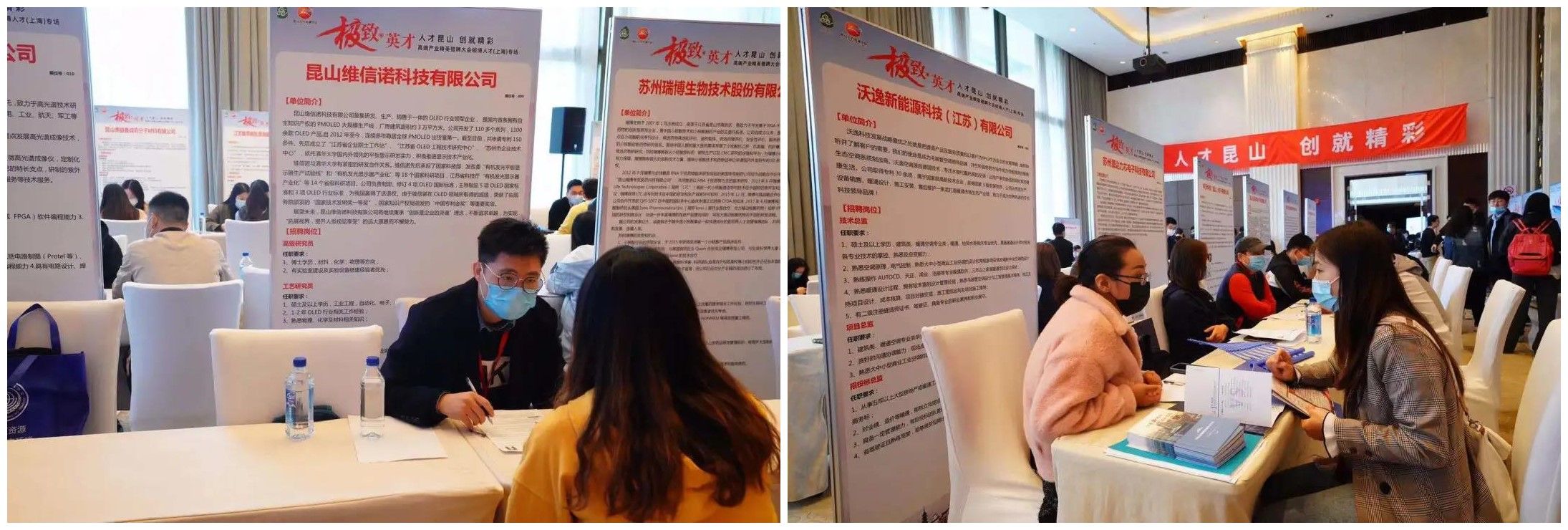 本场猎聘会以硕博人才招聘为主要特色,50家参会企业共提供285个职位,硕博研究生需求488人,占比53.7%,首次占比过半。为兼顾高校毕业生与社会人才,猎聘会取点杨浦区,紧靠杨浦大学城,区内云集了复旦大学、同济大学、上海外国语大学、上海理工大学等知名高校。值得一提的是,政府、国企还现场设置专门展位,发布《昆山市引进特聘专员和国企高级经理公告》,集中展示我市12家事业单位、市属国企的16名特聘专员和国企高级经理招聘职位,职位年薪50万元至100万元,且享受良好的职业发展通道和优惠政策补贴,对优秀人才具有很强的吸引力。