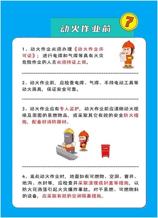 需要注意的是:在动火作业过程中,如果防范措施做得不到位,就十分容易发生爆炸、火灾等事故,轻则造成财产损失,重则导致人员伤亡。