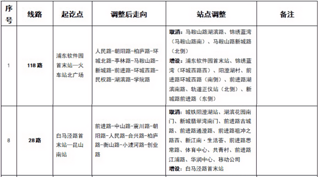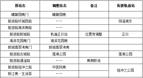 说明:表格内取消站点均为线路原核定站点,增设站点均为前进路地面道路恢复后新点位(部分新建、部分迁移、部分更名,其他途经站点以现场实际为准)。