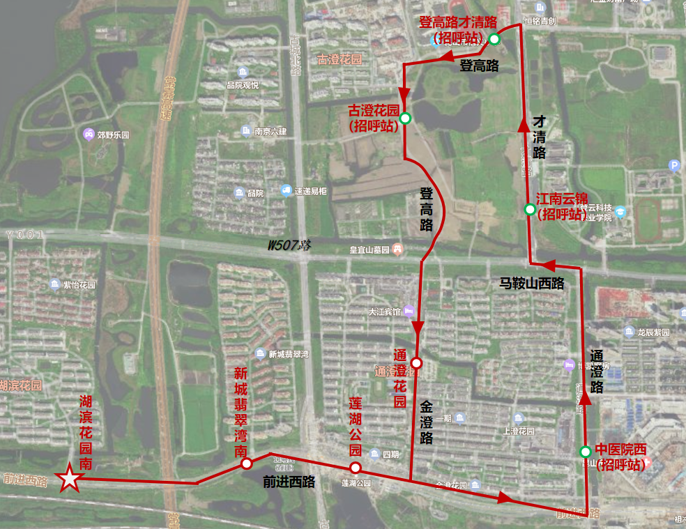 线路走向:前进西路-通澄路-马鞍山西路-才清路-登高路-金澄路-前进路,单环线模式