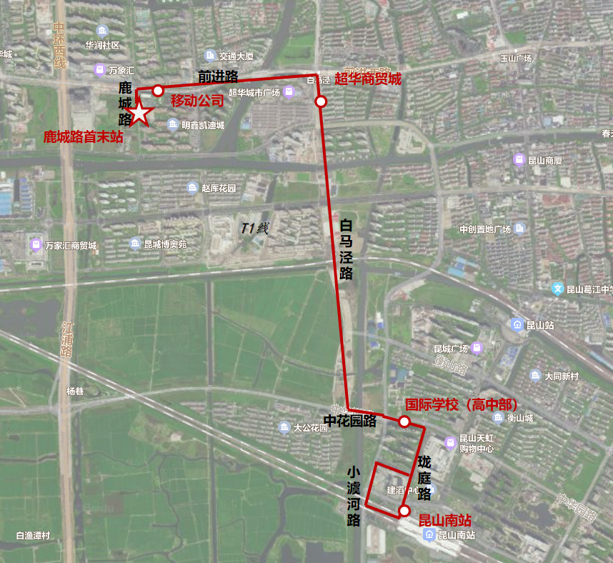 可前往地点:昆山市第一人民医院、昆山慧聚广场、珠江学校、东方花园、中木径美墅、项路景苑、东方家园