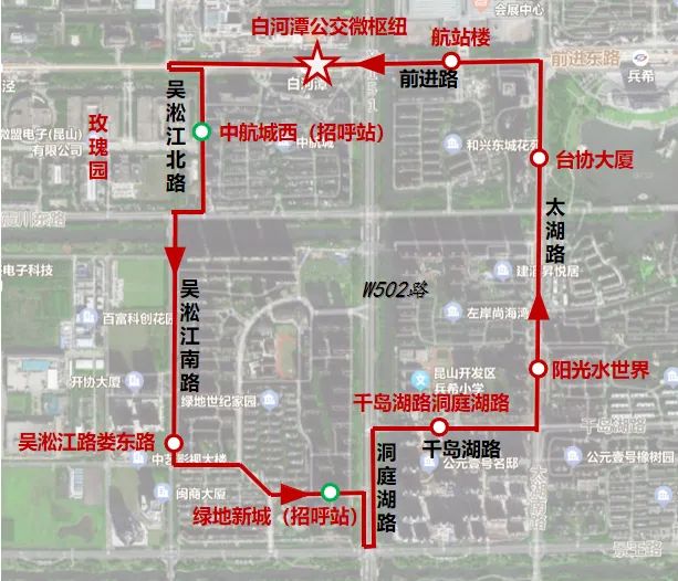线路走向:前进路-吴淞江北路-吴淞江南路-知育路-洞庭湖路-千岛湖路-太湖路-前进路