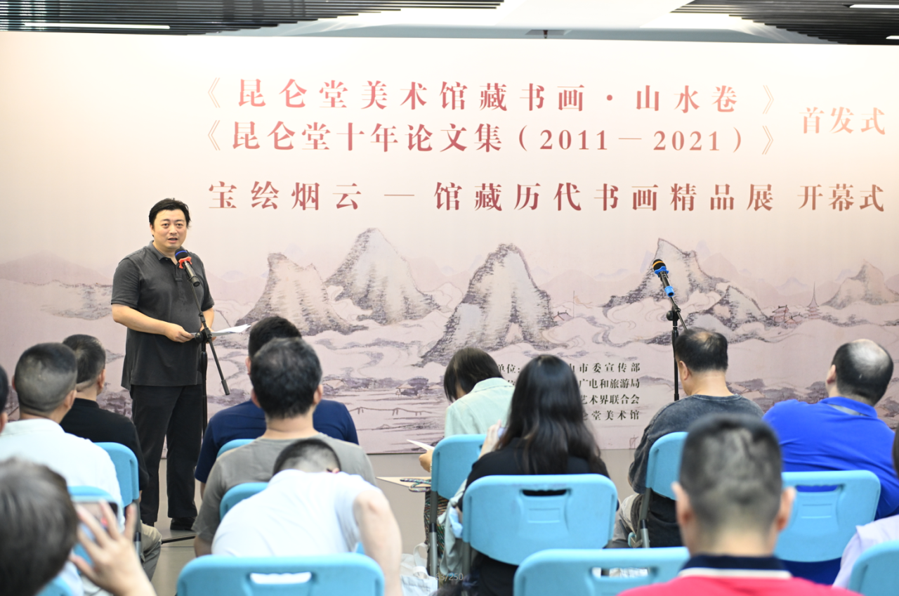 6月29日上午,《昆仑堂美术馆藏书画·山水卷》《昆仑堂十年论文集(2011-2021)》首发式“宝绘烟云——馆藏历代书画精品展”开幕式暨学术研讨会在昆仑堂美术馆举行,来自北京、上海、江苏等地约80名专家学者参加活动。