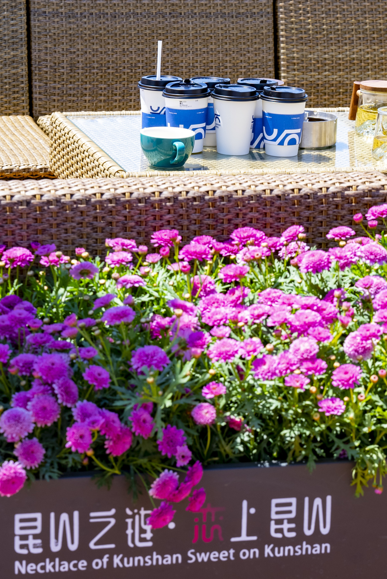 靠一杯咖啡出圈,“昆山之链”的流量密码还远不止这些。今年5月,随着“昆恋”咖啡二期工程的竣工,使得这里的配套服务更加完善,而“昆恋”IP也不仅止于咖啡。不远处,“昆恋”花海正花开繁茂、满园芬芳。许多游客会慕名而来,买一杯咖啡,可以休憩小坐,也可以去花海之中拍照打卡。