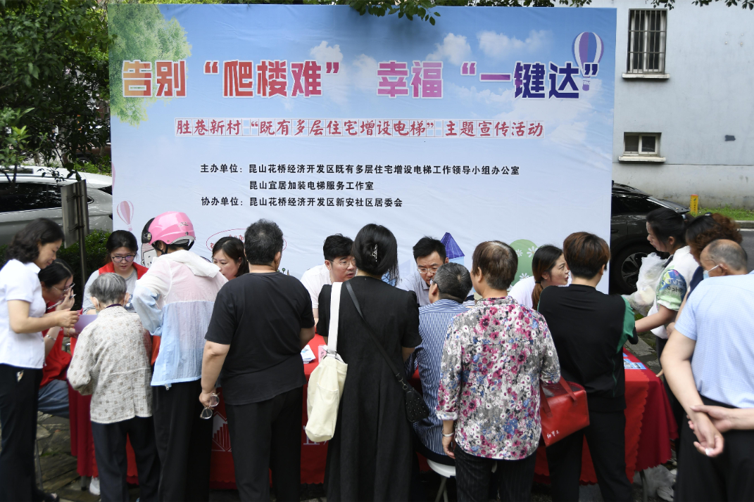 胜巷新村改造项目即将进场,在小区改造的同时谋划既有住宅加装电梯事宜,既能缩短项目周期,更好保障工程质量,也能减少施工过程给居民生活带来的不便。为了让居民抓住“旧改”契机,花桥增梯办会同新安社区、昆山宜居加装电梯服务工作室在胜巷新村开展以“告别‘爬楼难’,幸福‘一键达’”为主题的既有多层住宅增设电梯宣传活动,现场宣传既有住宅加装电梯政策,为居民们答疑解惑。