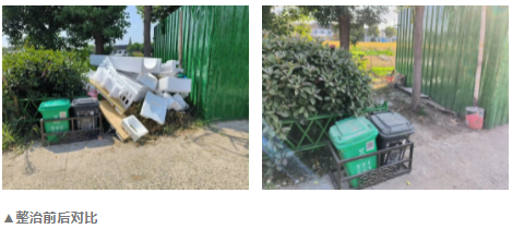 针对房前屋后乱堆放、卫生死角、黑色广告及河道漂浮杂物进行专项整治。目前,共计整治房屋四周乱堆放20多处,清理杂草堆放16处,清理黑色广告21处。清理公共空间杂草300平方米,清理搭建1处,清理更换破损垃圾桶14处。