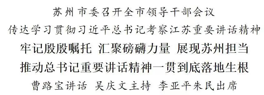 苏州市委召开全市领导干部会议传达学习贯彻习近平总书记考察江苏重要讲话精神