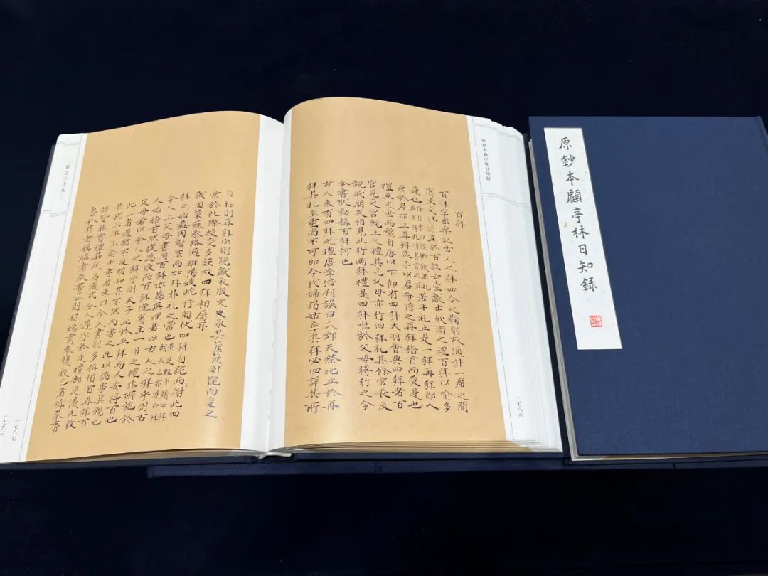 《日知录》是顾炎武的代表作品,囊括了其全部学术主张、政治思想。其中,《原钞本顾亭林日知录》是目前存世《日知录》版本中最接近顾炎武原稿的版本,学术价值极高。该原钞本由收藏家、澜起科技董事长杨崇和于2015年高价竞拍而得,由昆山市人民政府、华东师范大学出版社、华东师范大学江南文化研究院高清原色影印出版,为世人完整准确研究理解顾炎武思想提供了珍贵资料。