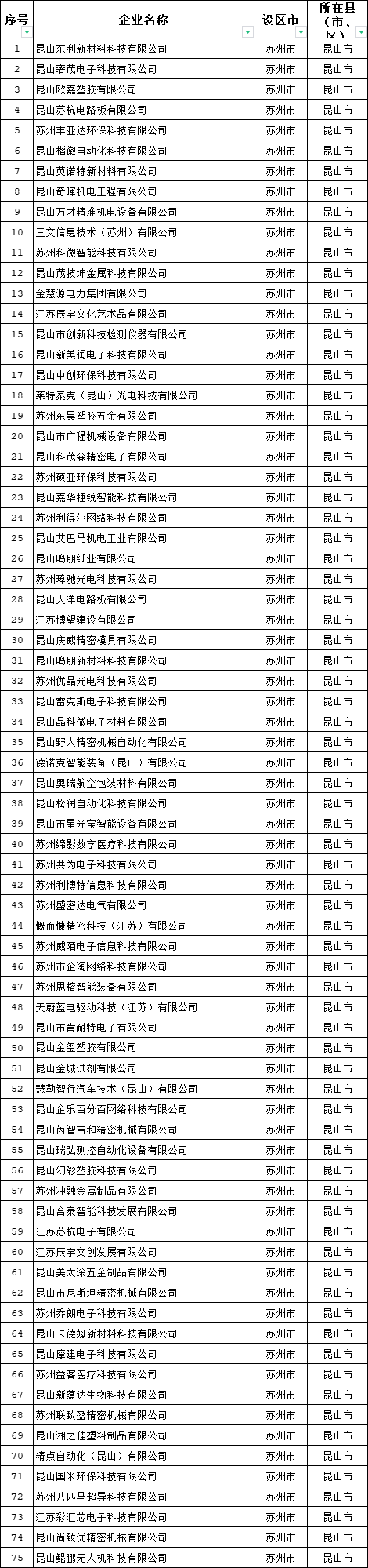 昆山150家!2023年第一批江苏省民营科技企业备案名单公布