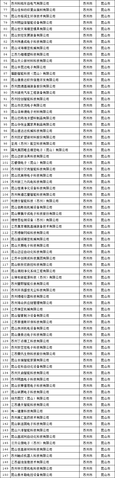 昆山共有150家企业上榜