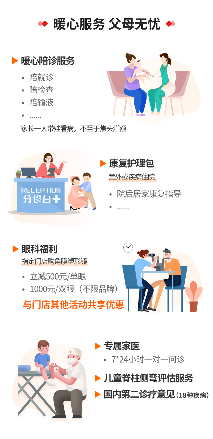 提供就医陪同服务,陪就诊、陪检查、陪输液,家长带娃看病,省心又省力。