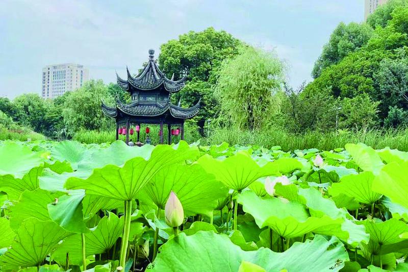 “接天莲叶无穷碧,映日荷花别样红。”没有什么花,比荷花更能代表夏日的浪漫意象。对于周边小区的居民来说,莲湖公园是绝佳的赏荷去处,更是一年四季不可或缺的一抹绿色。
