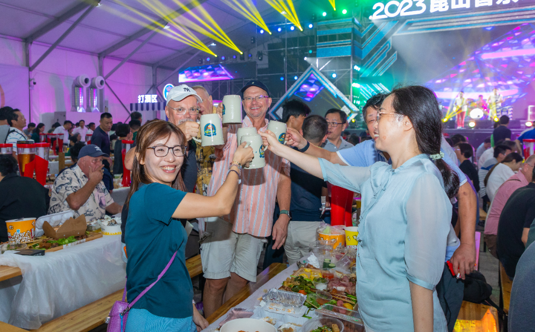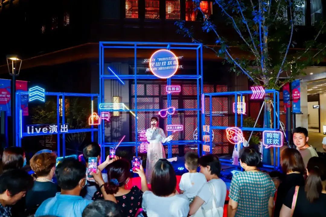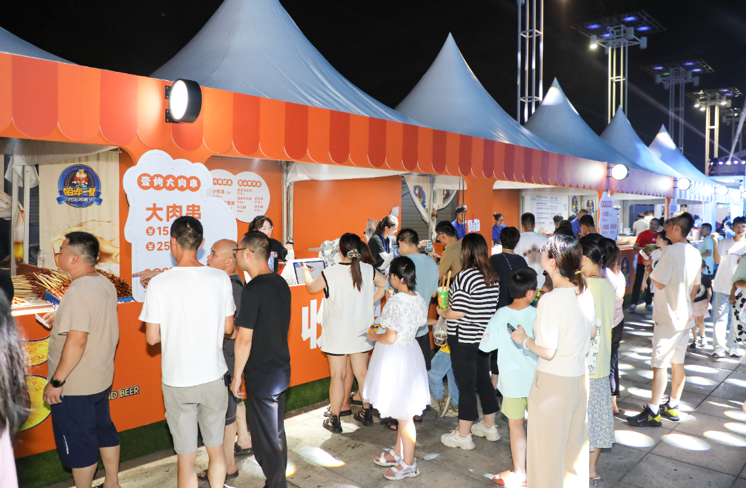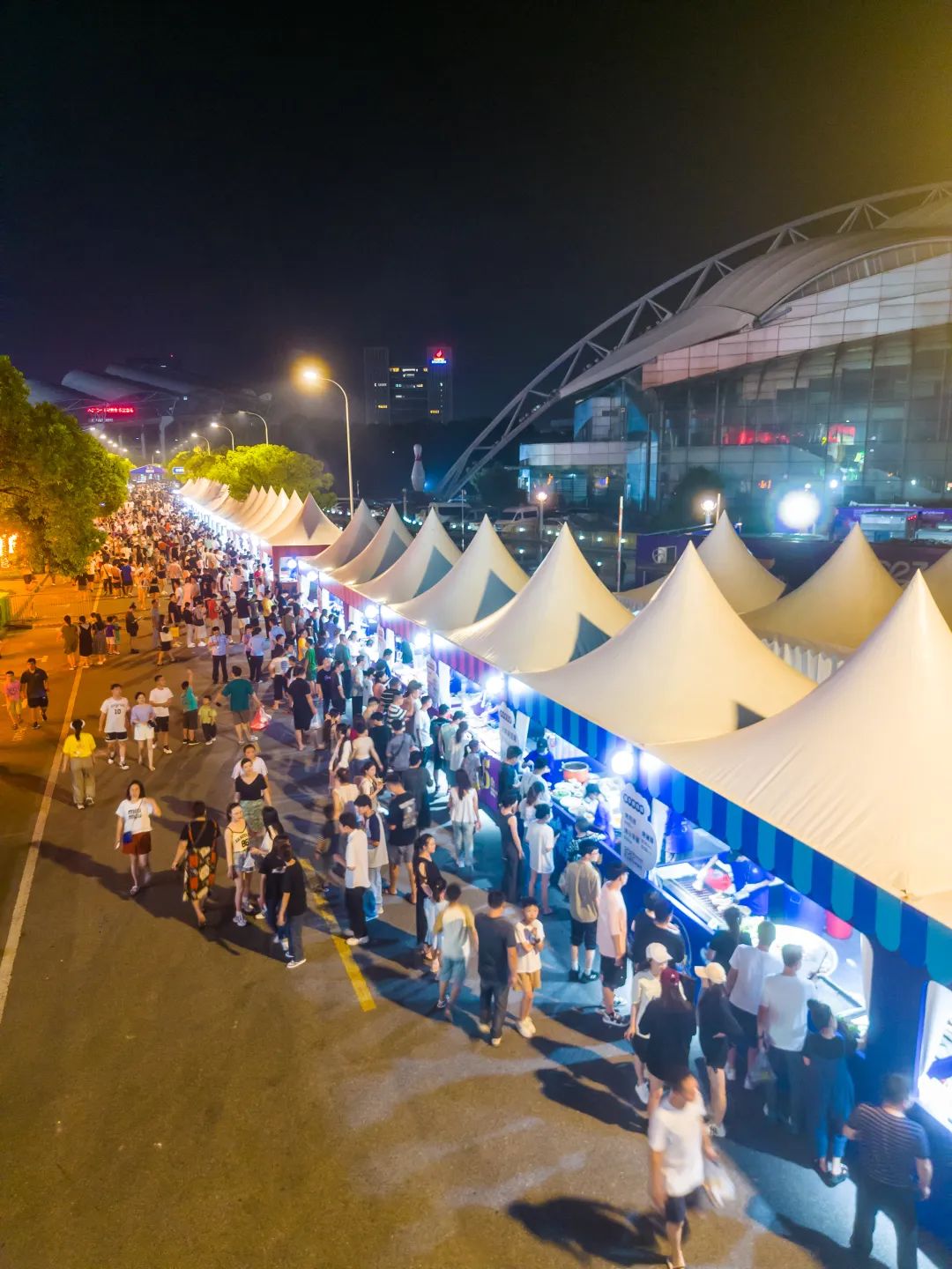 每天晚上,这里高潮迭起,龙虾、烧烤、啤酒摆得满满当当,市民游客与亲友欢聚同坐,听着音乐、吃着美食,相聚畅饮,激情正嗨;场外,灯影五光十色,元宇宙互动、花样露营、美食夜市等促消费新“夜”态集聚,令人流连忘返。