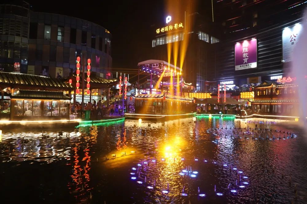 “优加·夜昆山”水上夜市以“江南复古水乡”为基础元素,集“食、娱、购、游”于一体。构筑“江南复古水街”,点亮乌篷画舫、水湾池景,勾勒“渔舟唱晚”的悠远意境;拥有昆山首个四季天幕街,通过炫光、飘雪等特效营造沉浸式体验。
