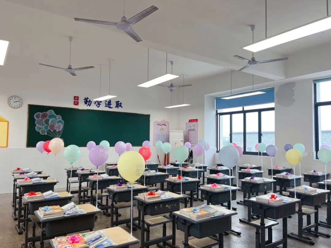 ▲震阳实验学校用气球装扮教室,营造轻松氛围