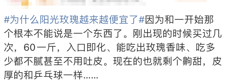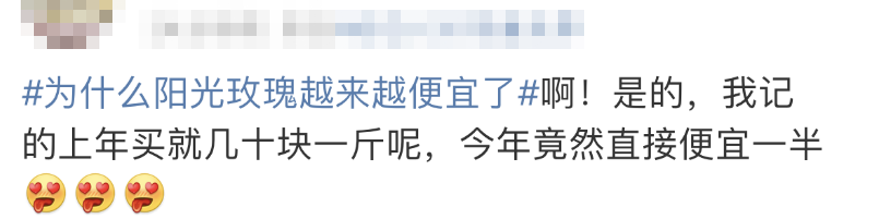 近日,“阳光玫瑰”越来越便宜的消息