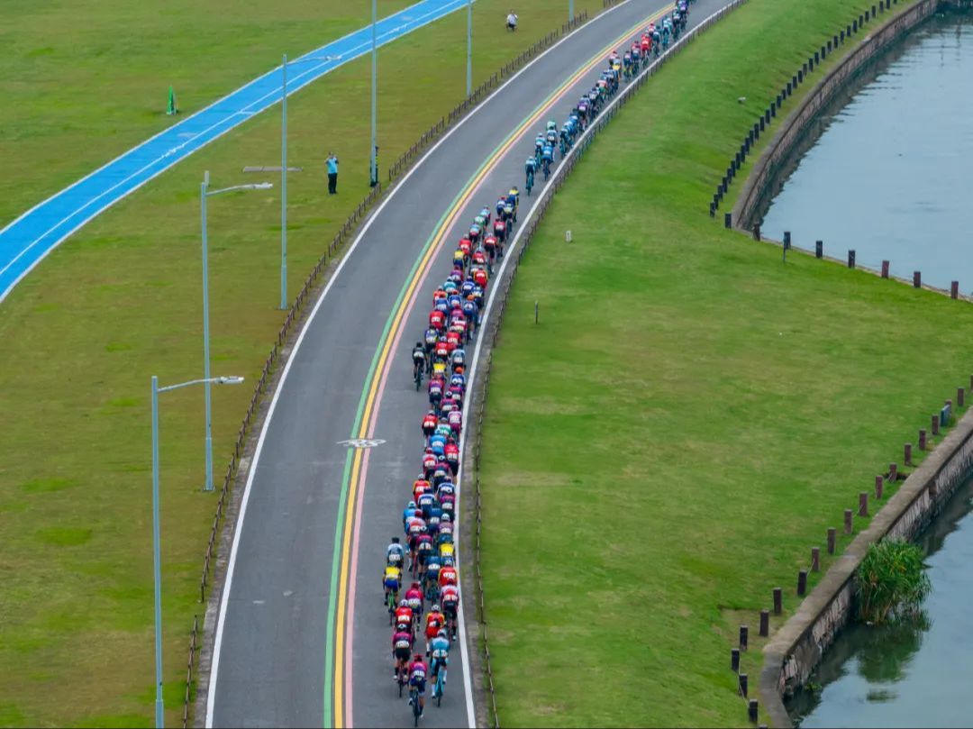 本次赛事全程420公里,昆山站全长141.8公里,是4站中赛程最长的一段。昆山站以盈湖路/万园路交叉口为起点,途经环湖大道、曙光路、盈湖路抵达终点盈湖路/万园路交叉口。选手经过环湖大道时途经半马草坪、金家庄湾、真爱码头、花海公园、音乐广场、银杏大道等景点。此外,除了烟雨诗意浸润的湖光美景,赛道两侧展板上,丰富的昆山元素向运动员们展示着昆山深厚的历史文化底蕴、良好的生态环境,让选手在骑行的同时,拥有不同的体验和感受。“今天的路线与欧洲其他赛道有所不同,途中能欣赏到湖景,是一次特别的比赛体验。”来自波兰马佐夫舍洲际队的运动员Marcin Miroslaw Budzinski说。