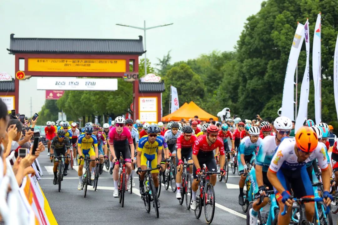 9月15日上午,南京银行·2023第十一届环太湖国际公路自行车赛暨长三角穿越赛第二赛段——昆山站开幕,来自世界各地的20支车队约120名顶级车手用双轮感受速度与激情,用身心享受湖畔美景。