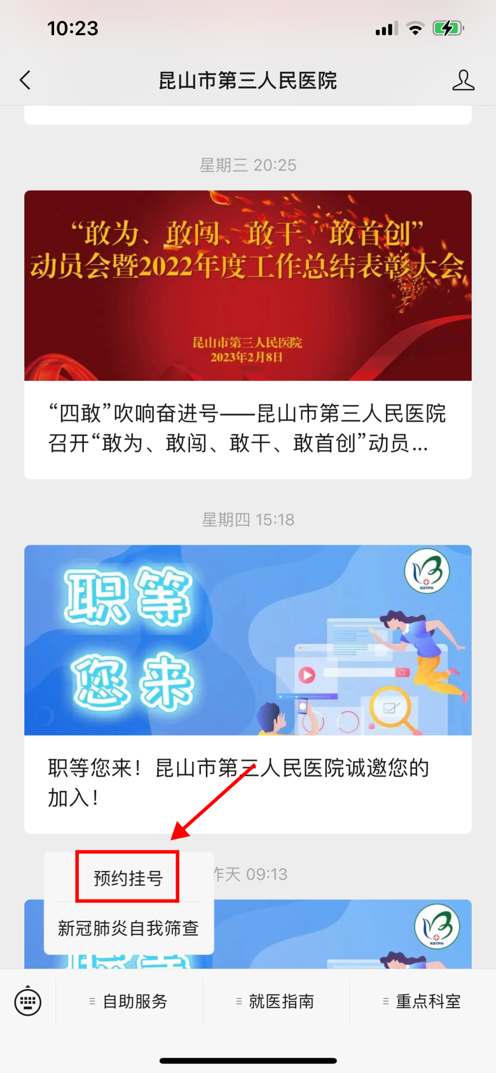 第一步:长按识别,关注并打开“昆山市第三人民医院”微信公众号。