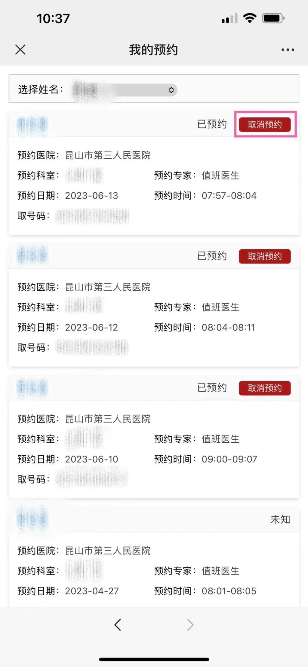 注:如因个人原因需要取消预约的,可在就诊日期前一日24点前在“昆山智慧健康”微信公众号上取消,步骤如下: