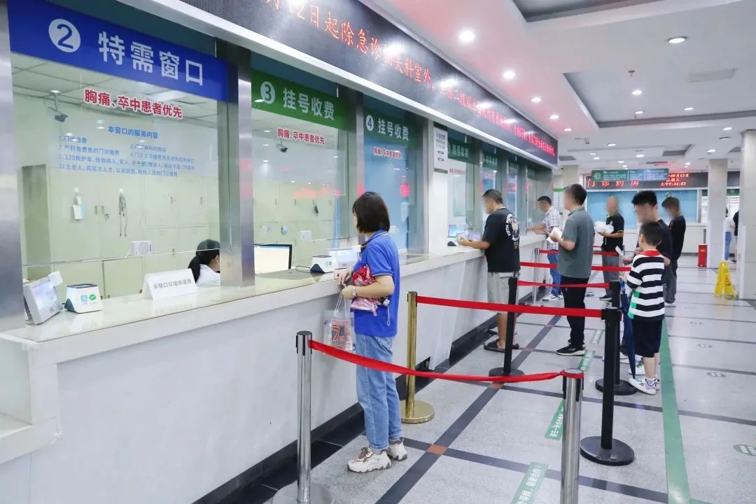 缴费取号后,可至对应的专科门诊,先签到再等候叫号。医院门诊分布在A楼、B楼和D楼。