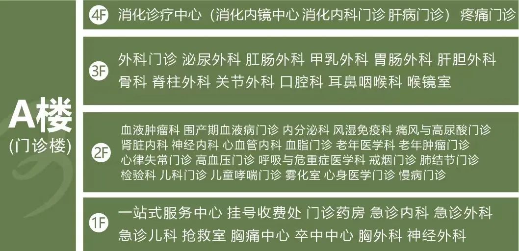 ·A楼专科门诊分布如图: