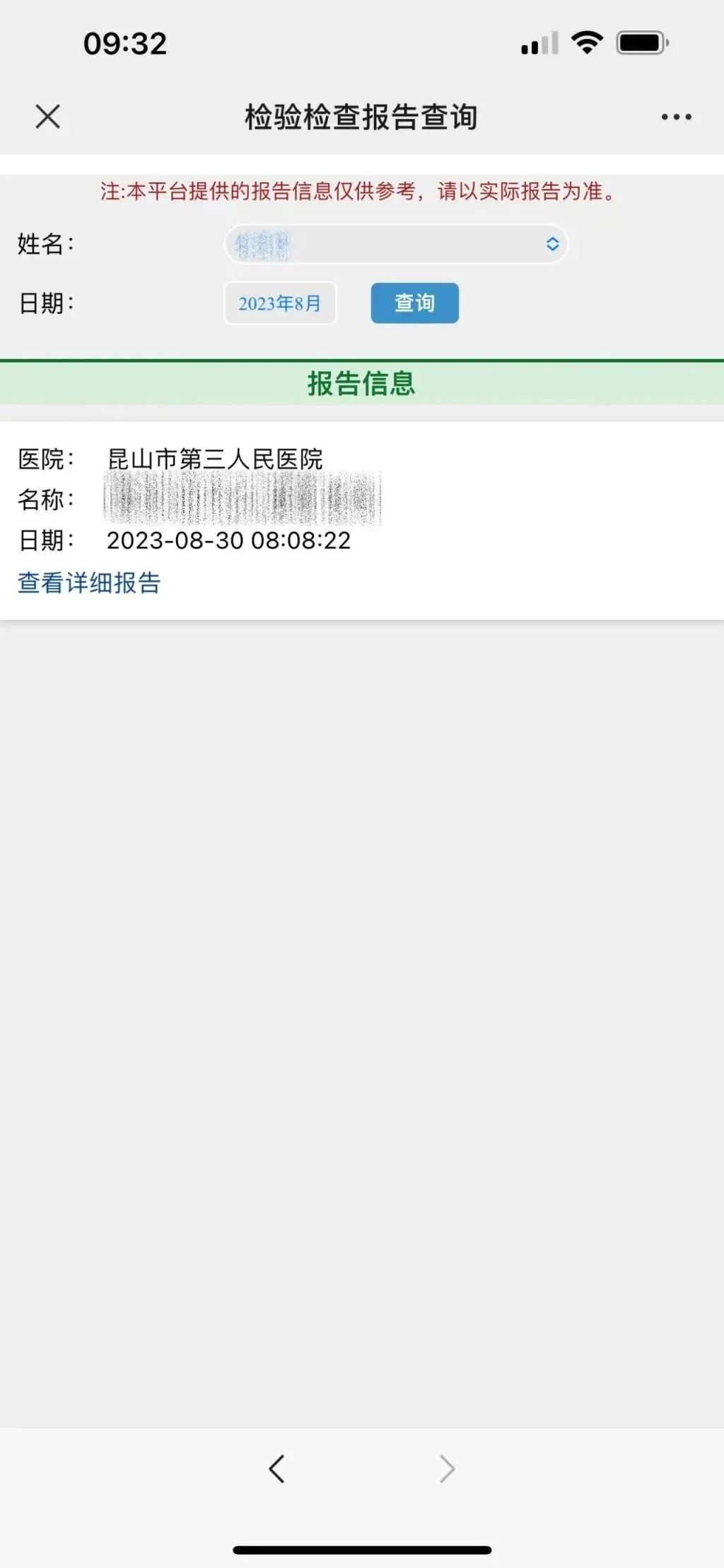 注:除病理报告及外送报告不可查外,其它大部分检验检查报告均可手机查询。