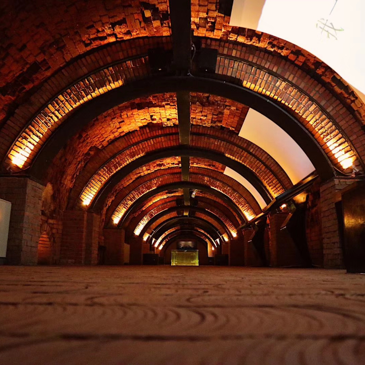 在全是红砖的建筑里