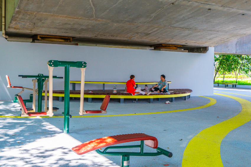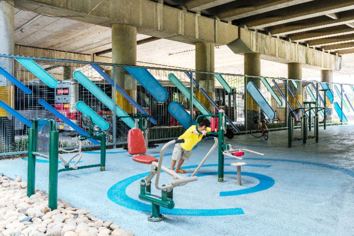 结合健身器械、儿童活动设施