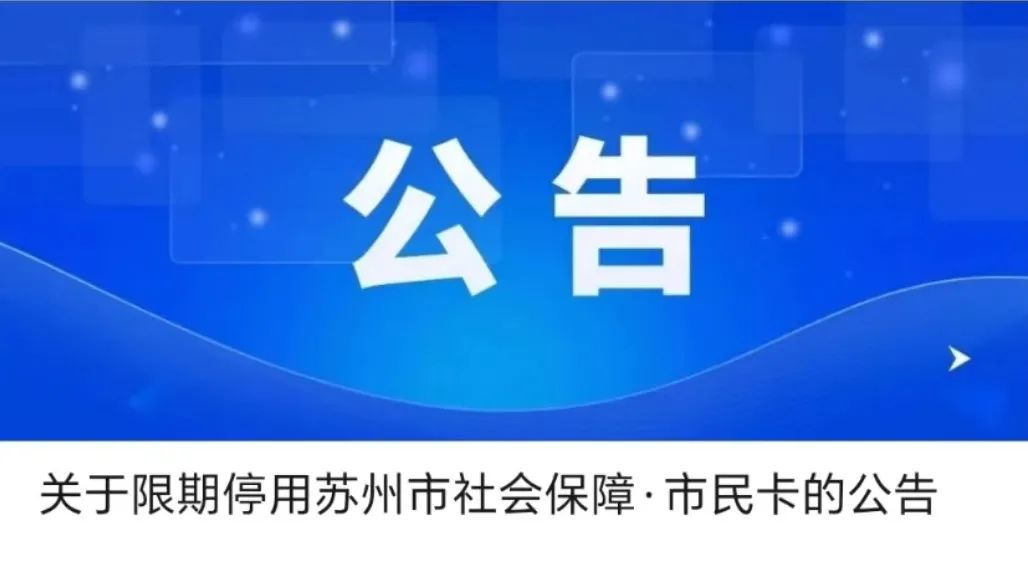 “关于限期停用苏州市社会保障∙市民卡的公告”