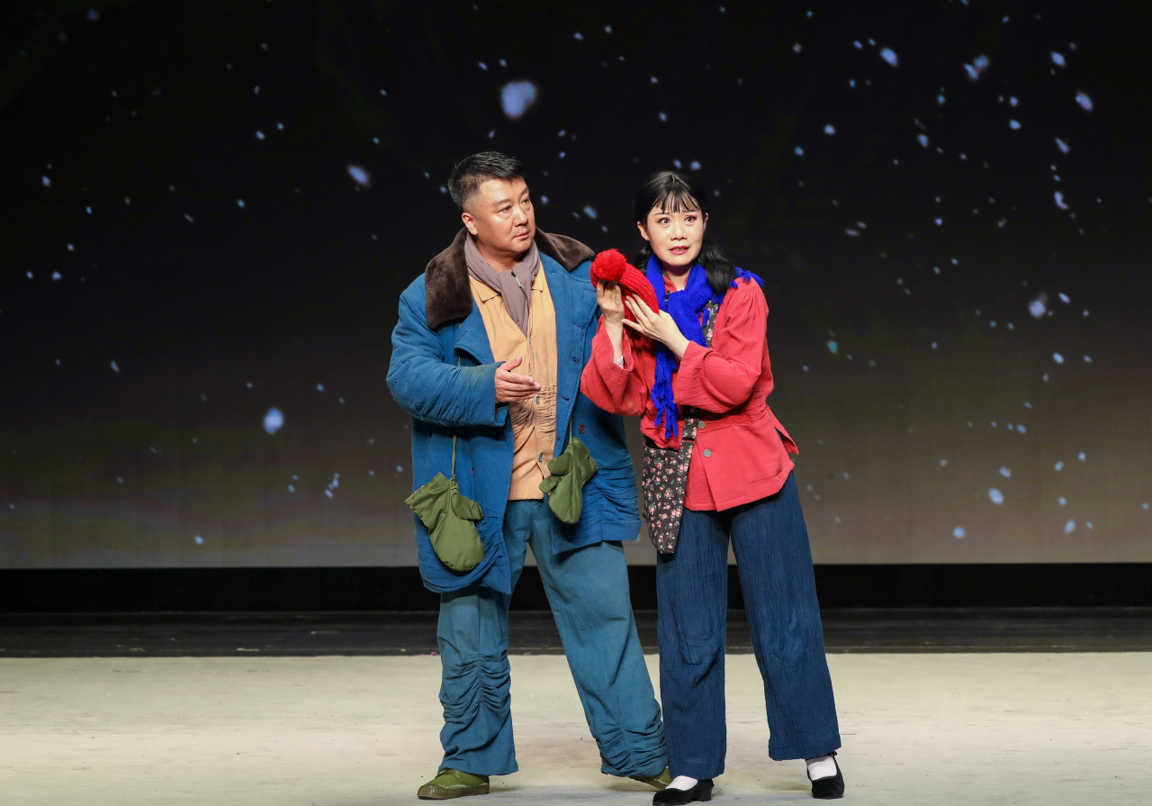 当晚七点半,由天津河北梆子剧院带来的《晚雪》拉开了演出序幕。《晚雪》根据孙德民的话剧《大风从这里刮过》改编,展现了一个平凡女子晚雪坚韧追寻丢失养女的漫长历程。该剧以晚雪、立春夫妻在寻女路上的曲折经历为主线,贯穿了煤窑老板施救、众矿工捐款、晚雪被人拐卖后又被老光棍放回等情节,演绎了晚雪在痛苦的煎熬中迸发出的人性火花,疾呼良知和大爱。“这次的表演我们经过了多次加工打磨,在故事完整性和演员表演上有了很大提高,希望现场观众能够喜欢。”国家一级演员王少华说。现场,跌宕的情节、真挚的情感深深震撼着每一位观众,热烈的掌声经久不息。