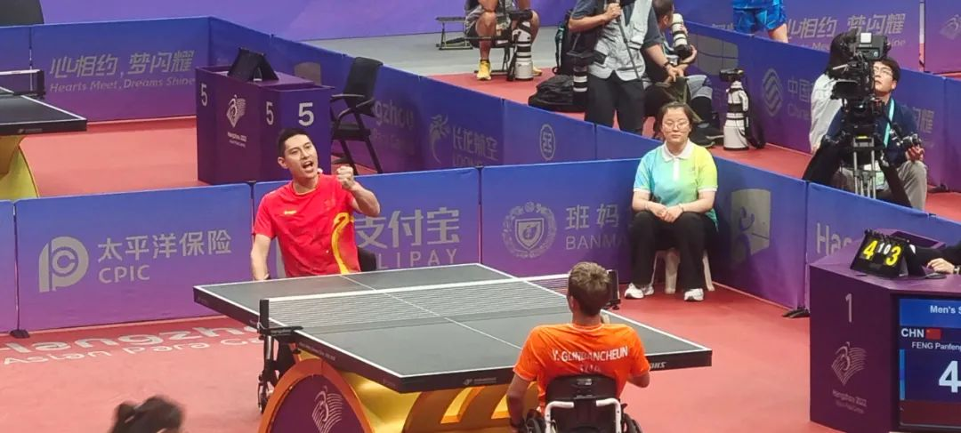 在杭州亚残运会乒乓球TT3级男子单打决赛中