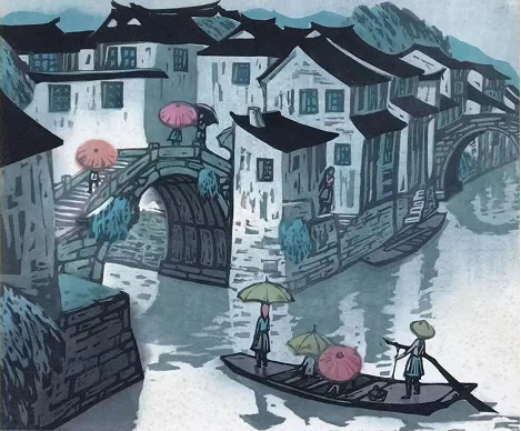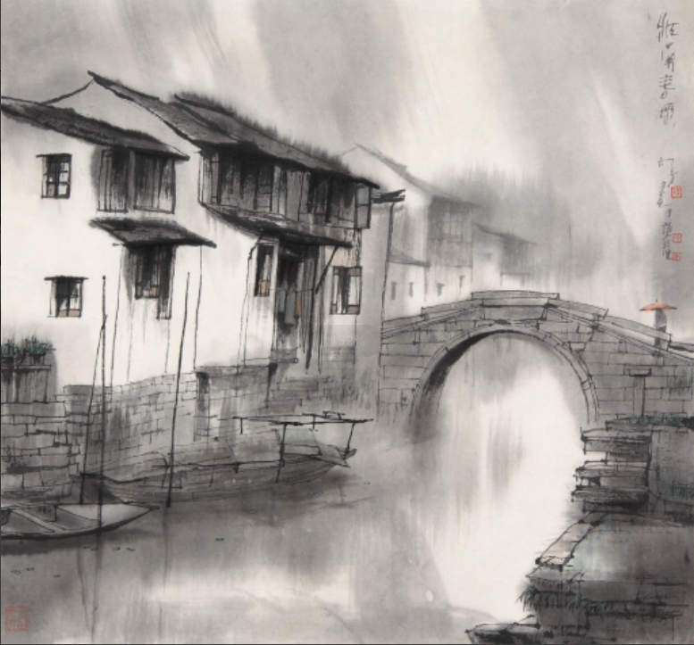 从那以后,他先后多次前往周庄写生创作,在这个能够寻得共鸣的小镇上尽情挥墨,创作了《水乡节日》《江南春雨》《周庄之晨》《小巷深处》《舟过石桥》等一系列佳作。