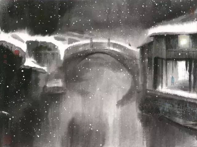 ▲《水乡瑞雪夜》
