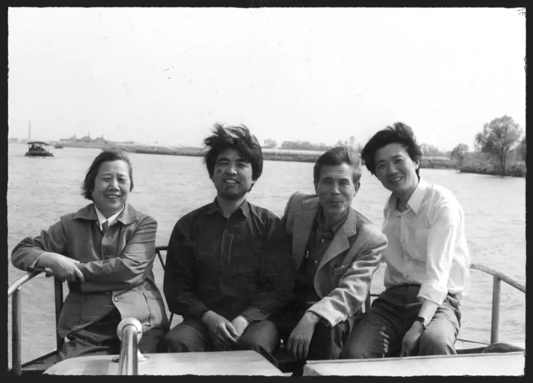 ▲1984年,杨明义陪同华君武乘小火轮到周庄