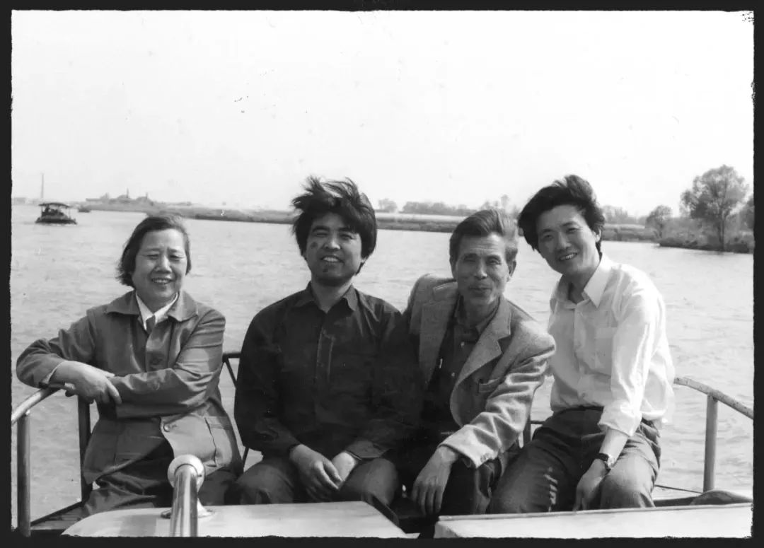 ▲1985年5月,杨明义陪同吴冠中(右二)和夫人在周庄写生