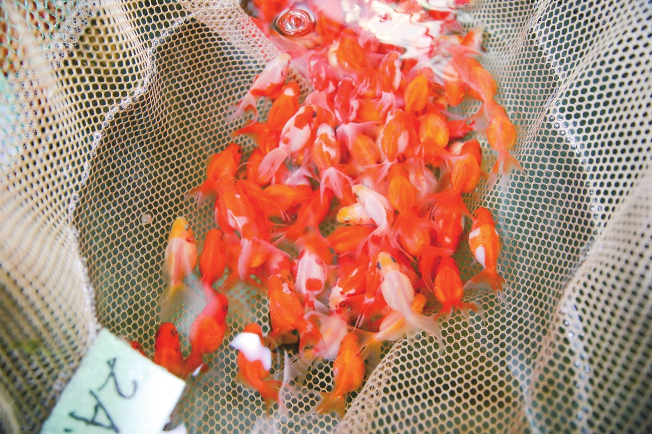 记者走进东阳界自然村年年有鱼水产养殖基地,看到这里的水面区域被隔成了上百个大大小小的“格子间”,所有的金鱼都按照品种、鱼龄、公母划分“入住”。