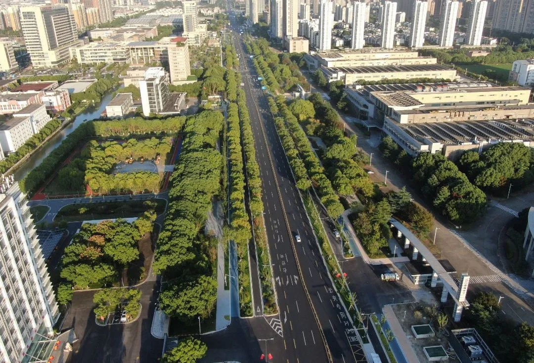 青阳北路是连接昆山南北的交通枢纽、昆山“十六横十二纵”之一。改造后,局部路口渠化,中环内杆线入地,让出了蓝天白云,空间感提升;交安路灯共杆,亮化标志牌,整体提升城市形象。同时,有助于加速北部新城建设、加快新产业发展、拓展新赛道布局。