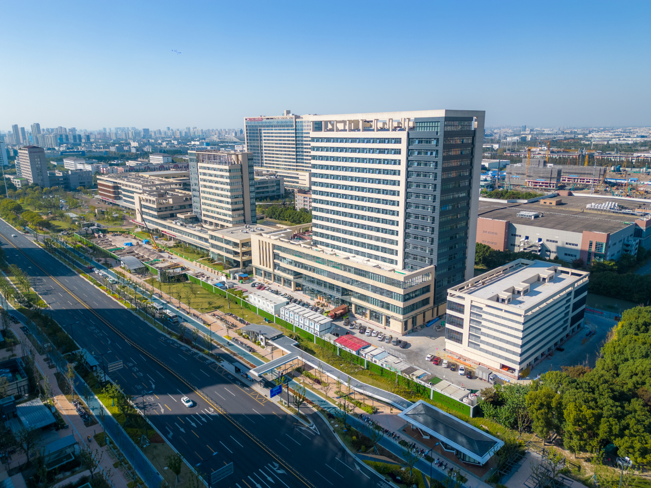 昆山市公共卫生中心(二期)建设项目:位于通澄路东侧、昆山市公共卫生中心南侧,主要涵盖急救中心行政办公、急救技能培训、急救调度指挥、疾控疫苗存储等功能。项目于2021年1月开工建设,计划2023年11月竣工、12月投入使用。目前,项目主体工程完成99%,正在进行景观绿化和市政工程,及内部设施设备安装调试。