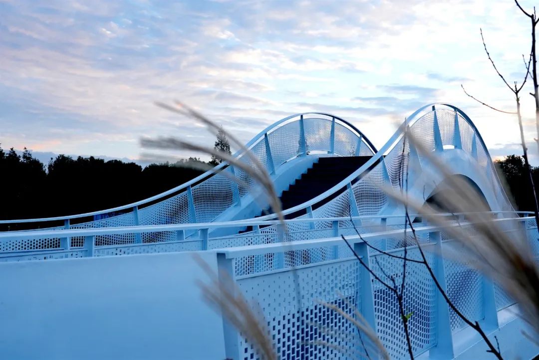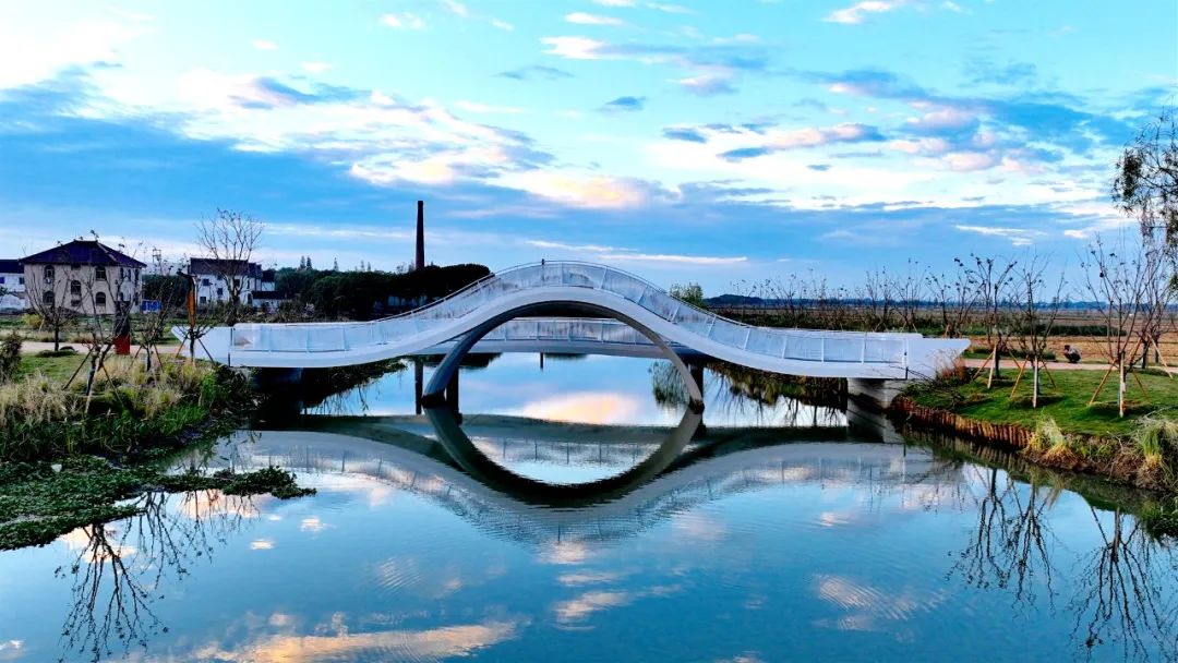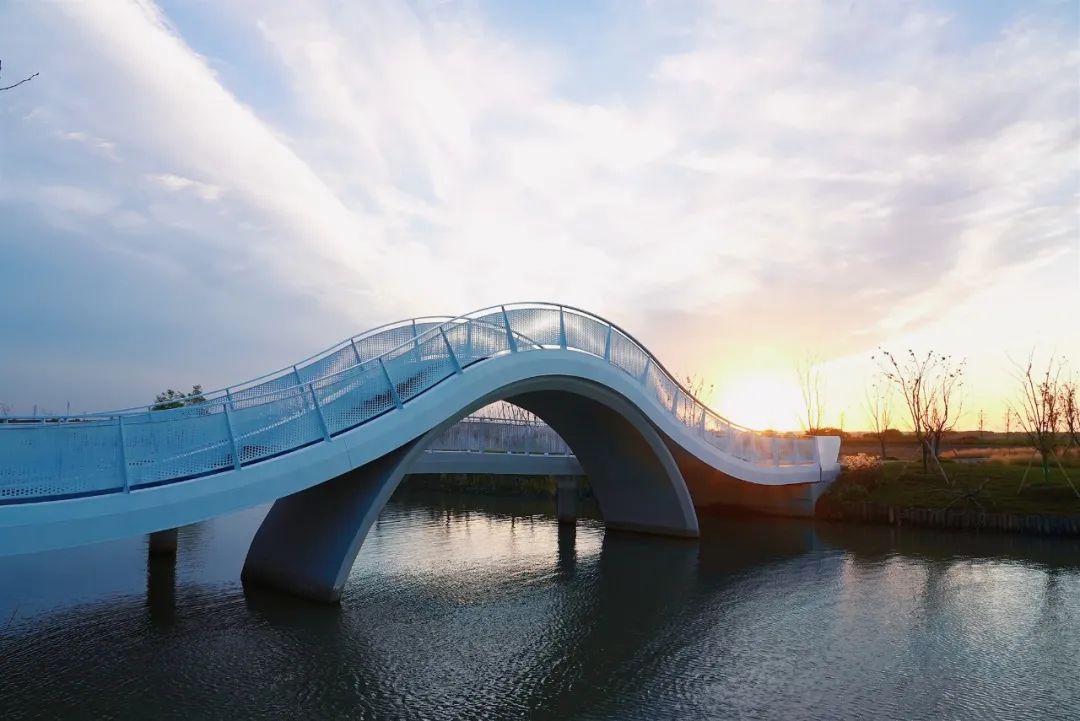 缘眼慢行桥于今年3月动工,历时7个多月于近日建设完成。桥长35米,宽6.5~10米,整体采用双桥设计形式。主桥为经典拱桥造型,融合了传统水乡元素,副桥通过曲线设计,使桥面实现了宽度的灵动变化,可骑行也可驻足观景。双桥一高一低,卧于阡陌湖荡之上,实现了桥与景的交相呼应,呈现出“河上缘眼”的水上奇景,是“昆山之链”首链缘甸段金缘线上的点睛之笔。
