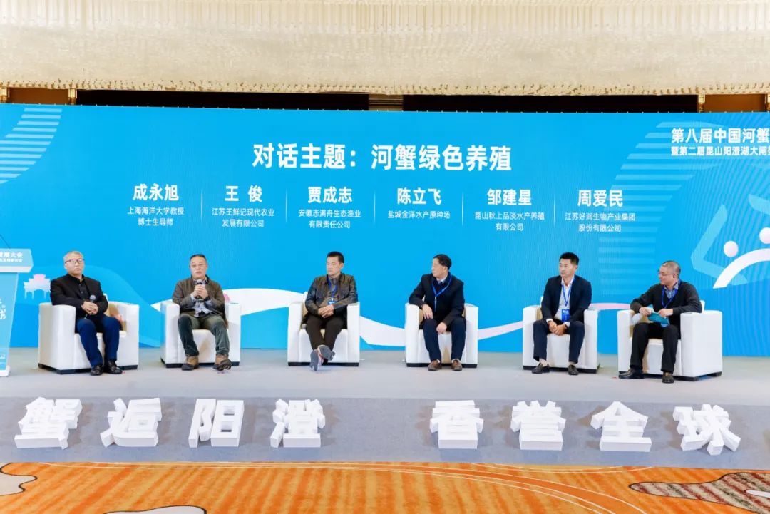 中国河蟹产业发展大会旨在聚集国内河蟹产业专家和一线人员,把脉河蟹产业发展现状,促进河蟹产业科学、健康、可持续发展。会议上,中国渔业协会水产商贸分会发起“金牌绿色养殖产区”“金牌绿色养殖能手”“金牌选蟹师”评比活动倡议;上海海洋大学对国家行业标准《中华绒螯蟹等级规格》进行宣贯;江苏省淡水水产研究所对“江苏省‘河蟹一张网’”平台进行推介;苏州市农业农村局现场解读《苏州市阳澄湖大闸蟹特色产业振兴三年行动方案(2023~2025年)》;巴城镇对鳗鲤蟹村项目进行推介;昆山市阳澄湖大闸蟹产业研究院现场展示工作成果,得到与会人员的一致肯定。