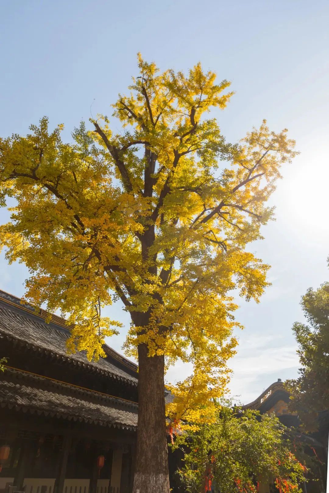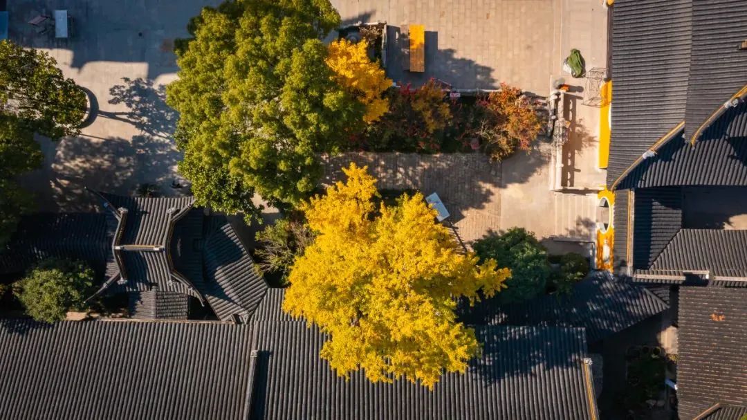 在千灯延福禅寺大雄宝殿外,有两棵千年古银杏,它们栽种于公元1008年,为一雌一雄。历经千年的风霜雨打,这两棵千年古银杏依然屹立于此,见证岁月的轮回。