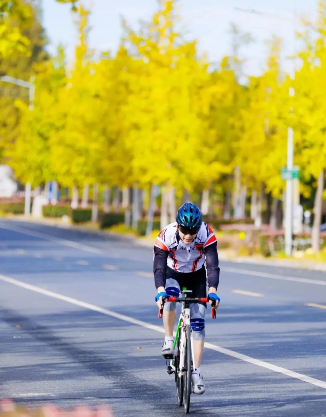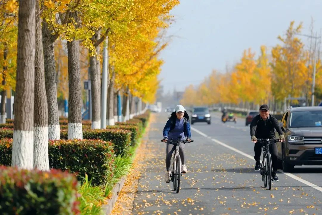 骑行于环湖大道,迎着微风追逐沿途好风景,飞驰的车轮带起金黄的落叶,氛围感拉满。