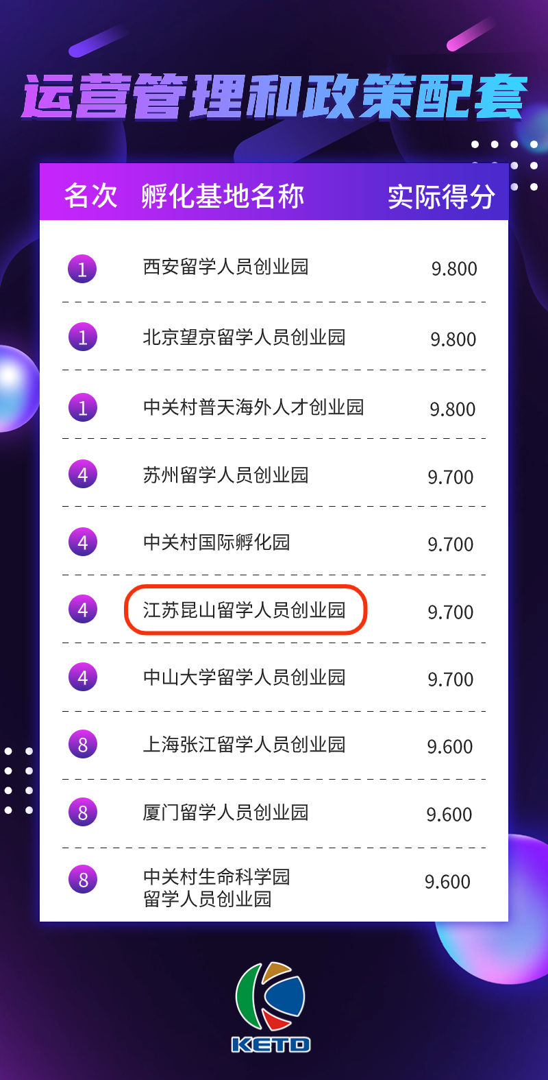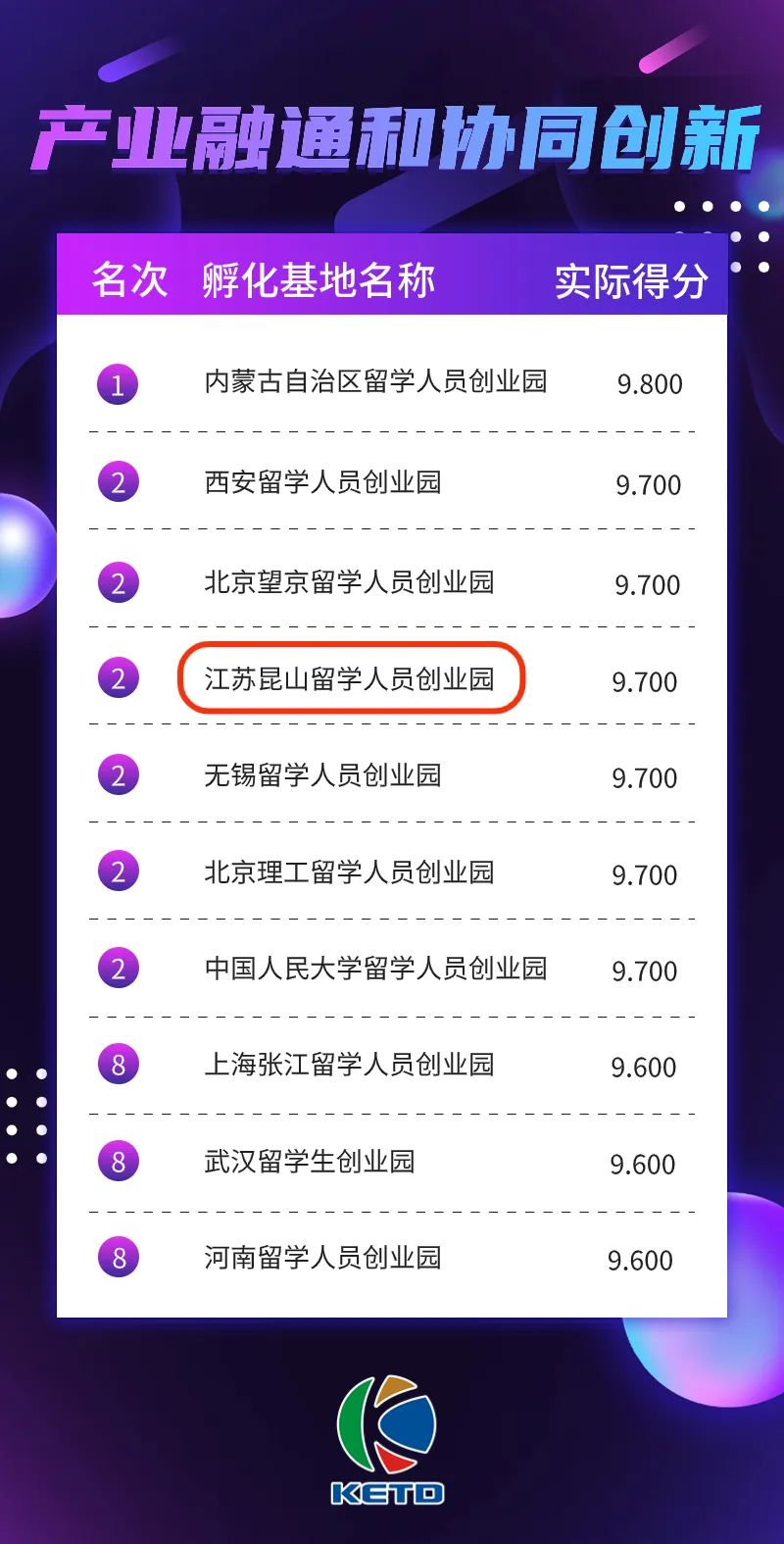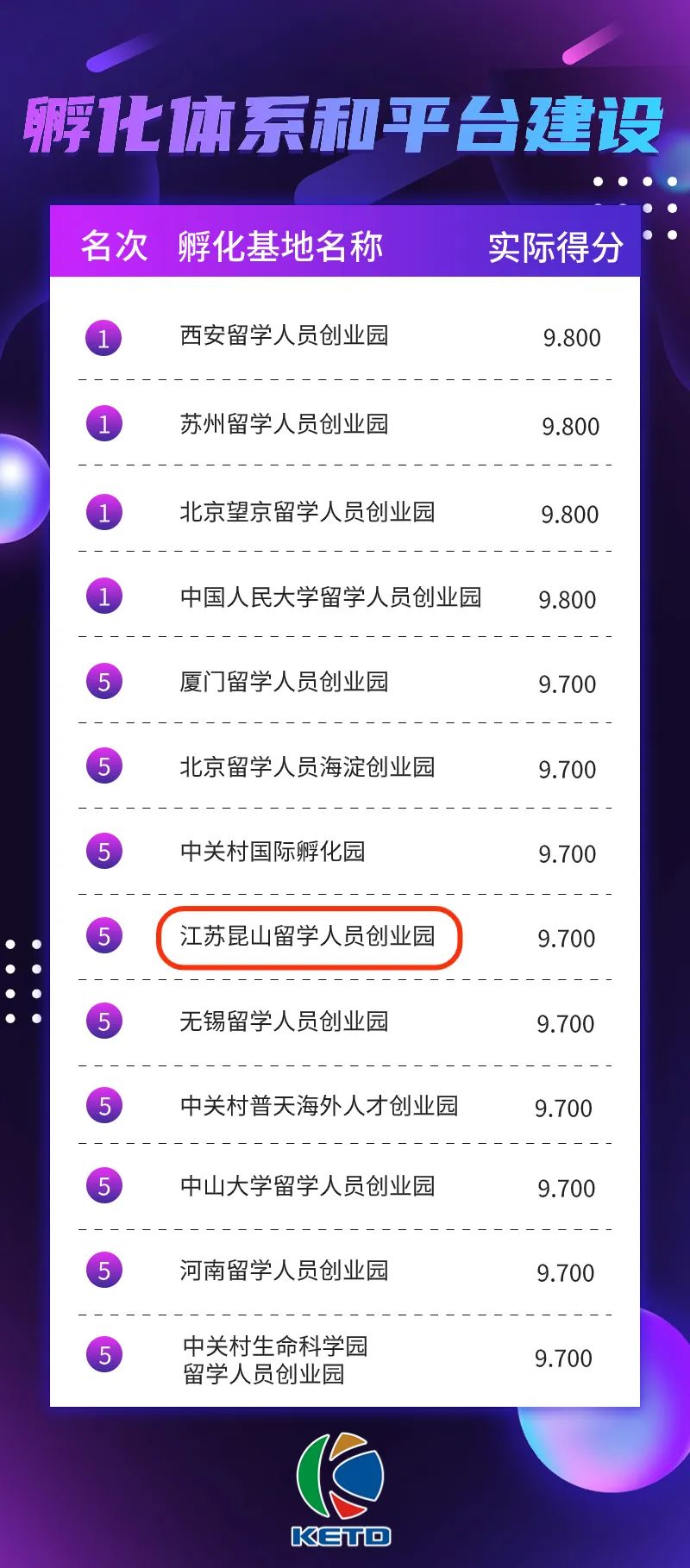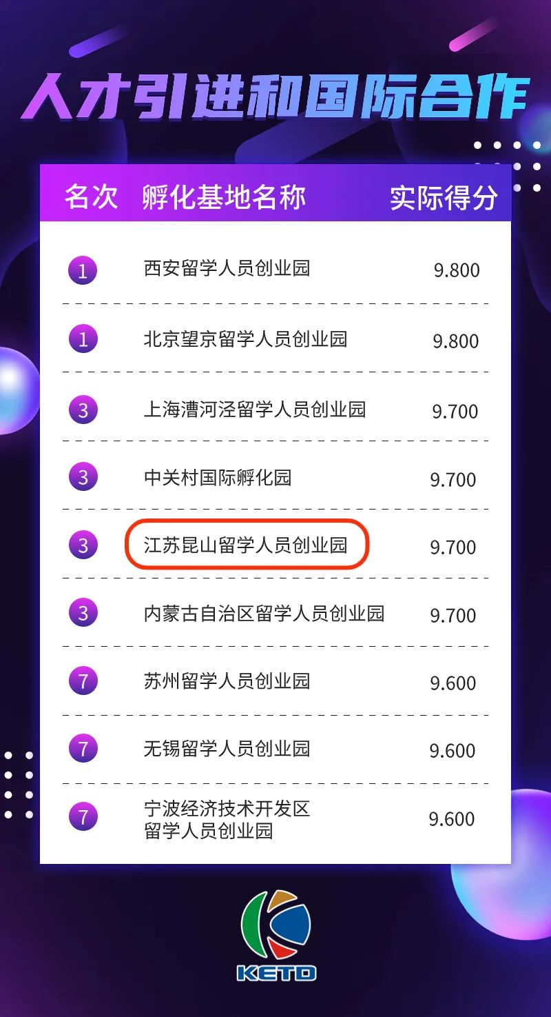 位居“孵化基地综合评价排名”全国第九