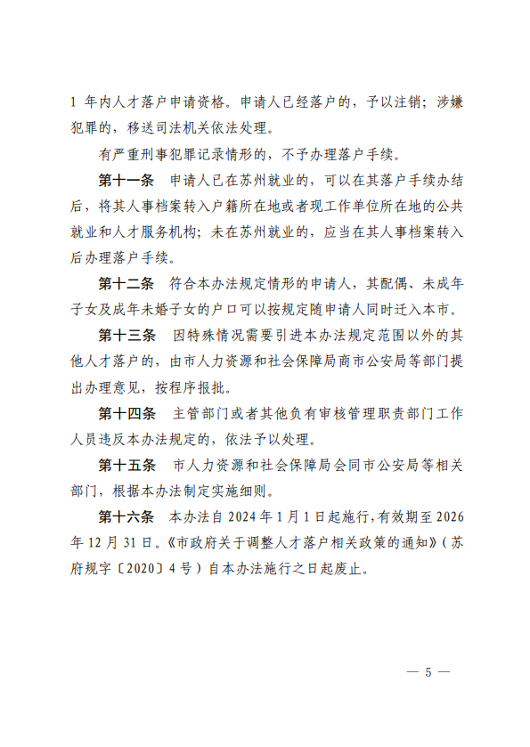 《苏州市人才落户管理办法》共十六条,