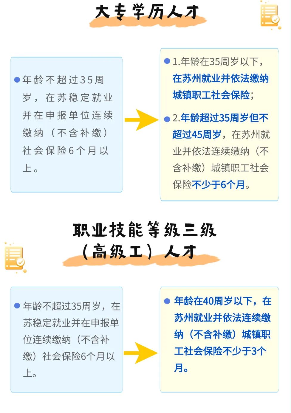 ❖ 1.大专学历人才社保缴费年限、年龄放宽: