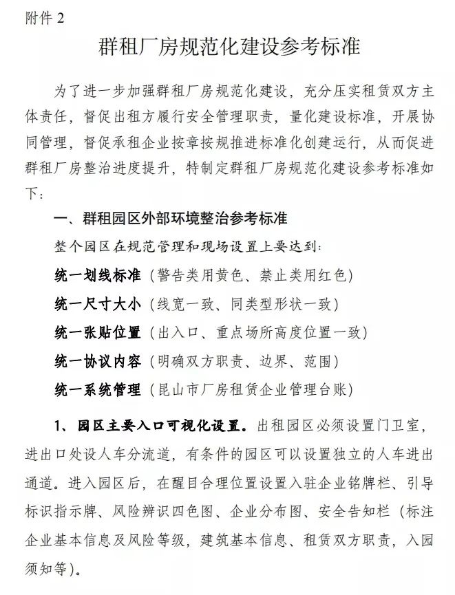 ▲群租厂房规范化建设参考标准