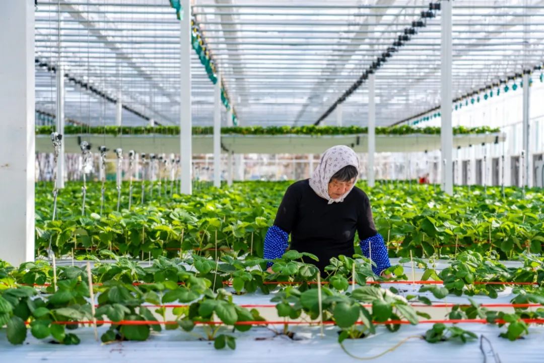 温室内环流风机系统、高压喷雾系统、智慧水肥一体化系统、余液回收系统等智能配套设施正在高效运转,管理者只需动动手指,就可全视化管理农场,一键读取、分析监测数据,精准管控智能设备,对草莓进行科学化种植和精细化管理。据了解,传统的草莓大棚每亩收益是一万五到两万元,而草莓工厂的亩收益可达5万以上,甚至更高。并且,草莓工厂比一般的大棚种植多三个多月时间,能够释放更多经济效益。草莓工厂的运营还为当地群众提供了增加了就业机会,提升了群众的劳动收入。